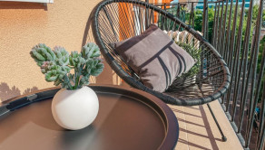 L'appartement dispose de trois chambres, d'une salle de bain avec WC et d'un salon spacieux baigné de lumière naturelle relié à la cuisine. L'appartement dispose bien sûr d'une cave, où vous pourrez ranger vélos ou outils, et d'une remise commune avec espace pour vélos. Bien sûr, il y a un balcon, ce qui est idéal pour le café du matin ou pour s'asseoir l'après-midi. L'appartement est climatisé.