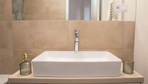 Kúpelňa a toaleta sú oddelené, ladené do príjemných prírodných farieb.
