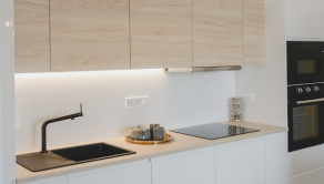 Vedľa sa nachádza vzdušná obývačka s balkónom spojená s modernou kuchyňou, v ktorej môžete tráviť príjemné chvíle s rodinou či s priateľmi.